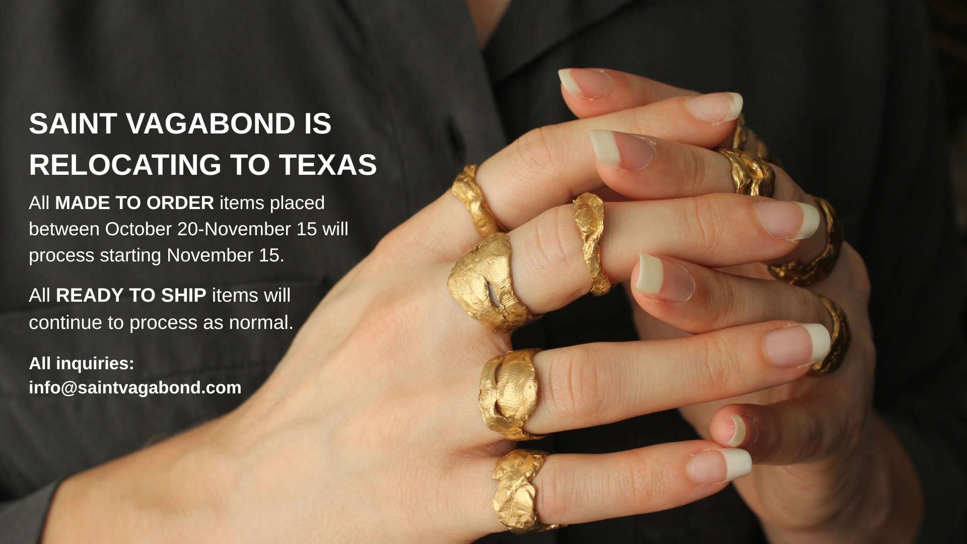 Saint Vagabond is a jewelry line established in 2015 by designer Kristina Sefeldt. Specializing in handmade goods using the ancient art of lost wax casting, she initially free-hand carves in wax, then continues her creations using multiple precious metals...